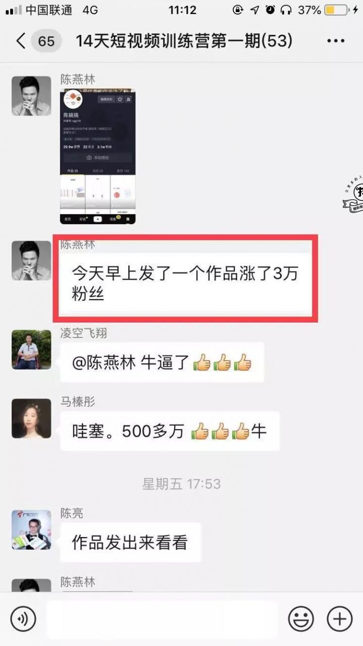 陳搞搞是短視頻實訓(xùn)營的優(yōu)秀學(xué)員之一。他在聽課+實操的短短十幾天已經(jīng)累計了將近5萬的粉絲。