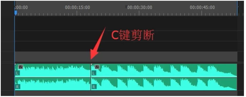 三、然后導(dǎo)入音樂、素材,這里的素材,圖片視頻都可以的,將音樂拉進(jìn)時(shí)間線,可以看到音樂的波峰起起伏伏,選擇一段適合用于卡點(diǎn)的音樂選段,用剃刀工具,也就是裁剪工具裁開。
