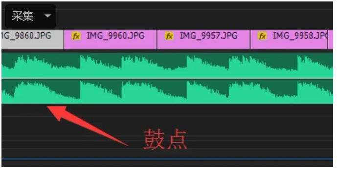 七、根據(jù)鼓點(diǎn)來節(jié)選素材,例如米格選的這一段音頻,每一次波峰的出現(xiàn),就是視頻或者圖片應(yīng)該切換的地方。