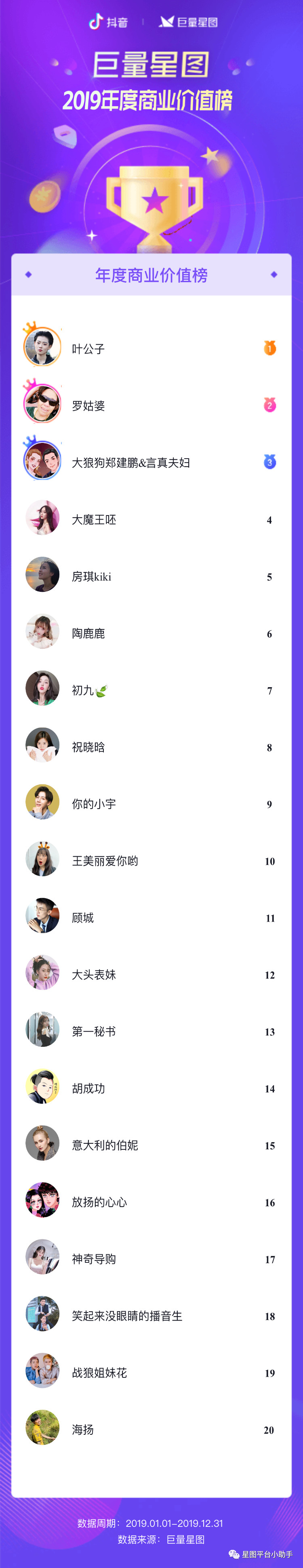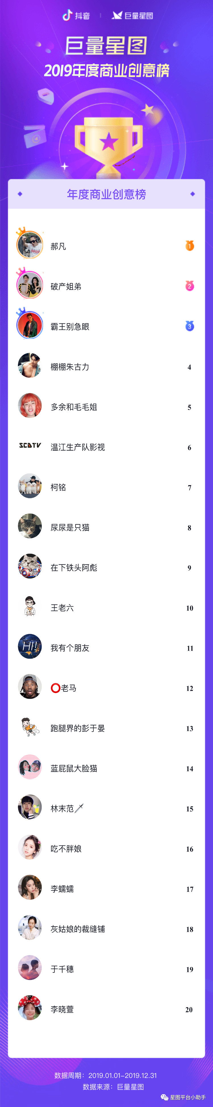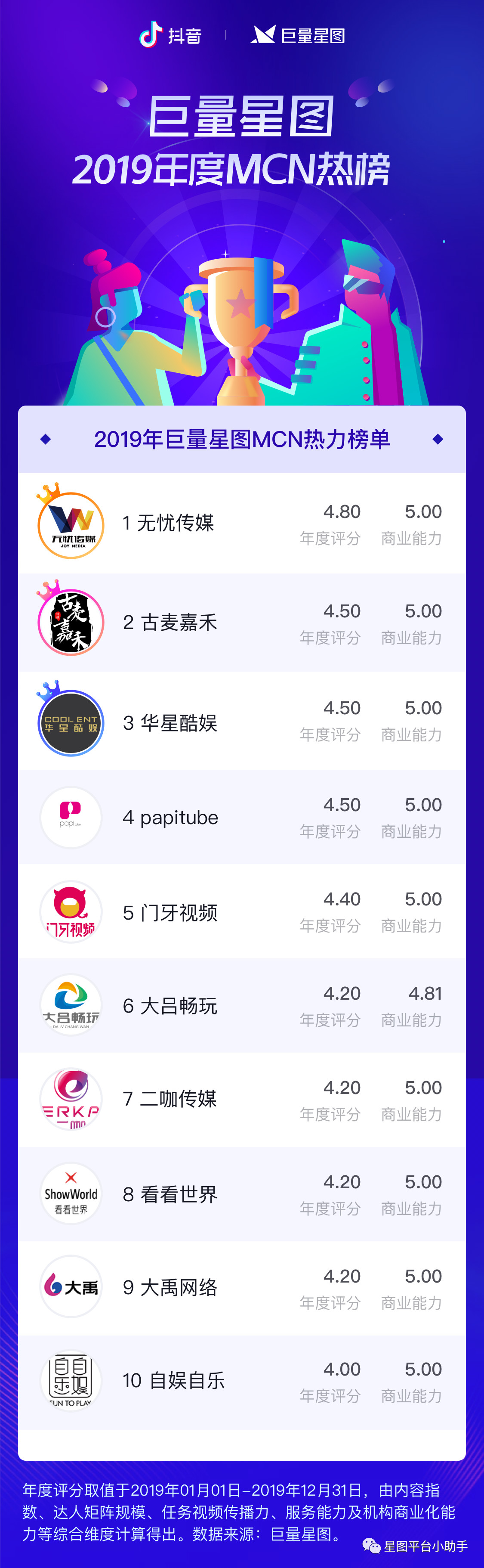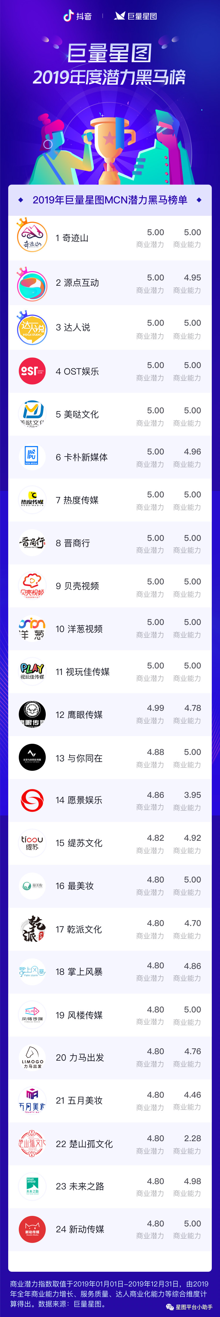 抖音巨量星圖年度排行榜來了!12萬達(dá)人,400家MCN有哪些強(qiáng)勢上榜?