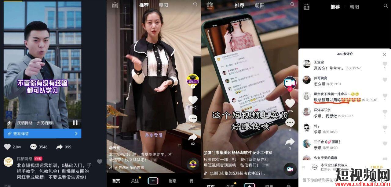 “沒有粉絲可以做短視頻帶貨嗎?沒貨源可以做短視頻帶貨嗎?沒時間可以做短視頻帶貨嗎?不會拍視頻可以做短視頻帶貨嗎?” “當然可以?!痹谌粘K⒍兑魰r,經(jīng)常會刷到這類廣告。廣告中的角色多以職場精英的形象出現(xiàn),“0基礎入門、手把手教學、包教包會、先體驗再交學費”等描述詞信手拈來,營造出一種財務自由就在眼前的假象,與“成功學”一樣的套路。 ?