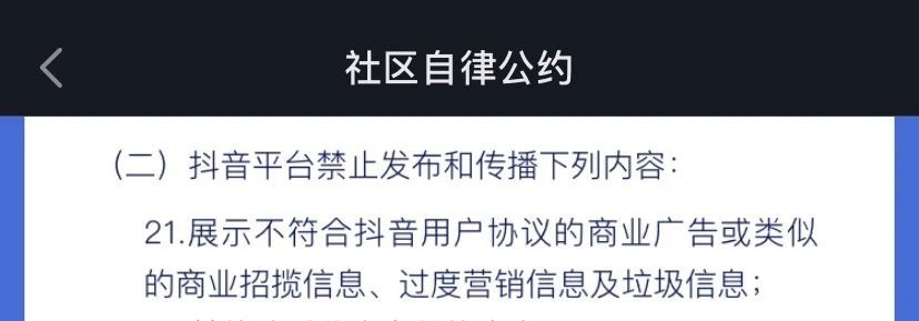 比如,抖音最不能容忍的是廣告。具體地說,是“不符合抖音用戶協(xié)議的商業(yè)廣告或類似的商業(yè)招攬信息、過度營(yíng)銷信息及垃圾信息”。  這很好理解,廣告是抖音最重要的收入來源,不走官方推廣體系,想通過直播“夾帶私貨”當(dāng)然是嚴(yán)格禁止的。像李湘在淘寶直播中,日常會(huì)在直播正式開始前播放合作品牌的廣告片,這種行為放到抖音上分分鐘給你限流掐斷。據(jù)說連直播畫面中如果出現(xiàn)過于明顯的品牌logo,停留超過2秒,都會(huì)被判廣告違規(guī)。這對(duì)想在抖音帶貨的商家來說,就很容易一不小心踩雷。需要格外注意。