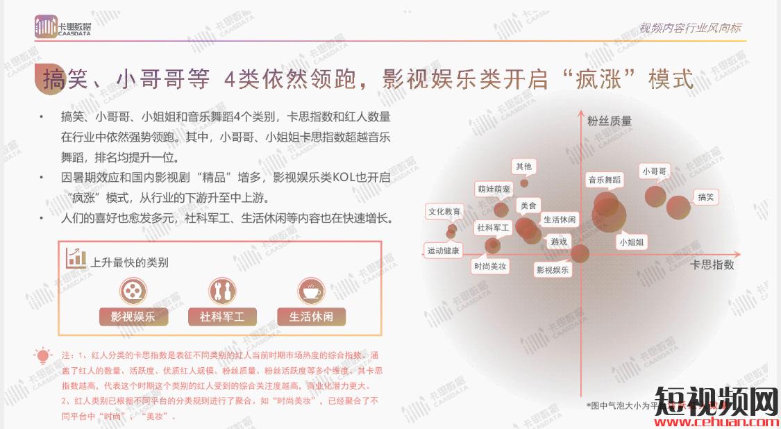 在卡思數(shù)據(jù)發(fā)布的《2019短視頻KOL年度報告》中顯示:2019年,影視娛樂類賬號開啟了“瘋漲”模式,從行業(yè)下游升至中上游。