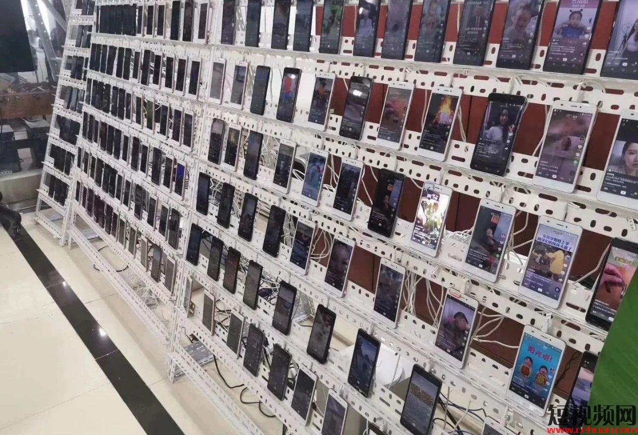 一面墻掛滿了手機(jī),以顯示刷量系統(tǒng)的強(qiáng)大實(shí)力;