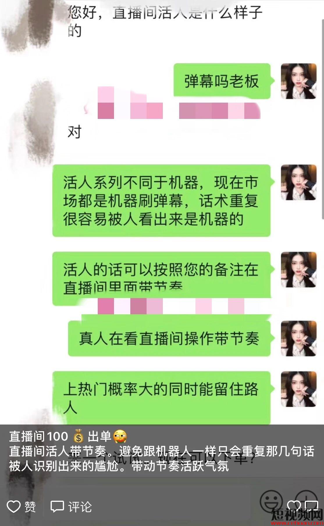 這位微商還接“直播間上人氣”業(yè)務(wù):“5個(gè)真人互動(dòng)一小時(shí)”收費(fèi)50元,“10個(gè)機(jī)器人刷3小時(shí)”收費(fèi)40元……