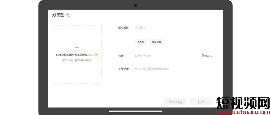 尤其是利用電腦剪輯的視頻,可以直接在電腦端上傳,發(fā)布時同樣可以添加描述,加入話題標(biāo)簽,還可以設(shè)置位置標(biāo)簽和擴(kuò)展跳轉(zhuǎn)鏈接。