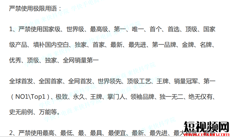 做廣告少不了一些修飾詞,但是其中一些詞就是抖音的敏感詞,是不允許出現(xiàn)的字眼。