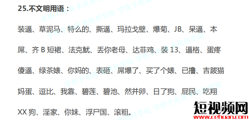 當(dāng)然,抖音短視頻和直播里面不能出現(xiàn)的違禁詞絕不止這些,我們通過近兩年時間的實操和摸索,總結(jié)出了一份比較全面的抖音短視頻以及抖音直播違禁詞PPT。