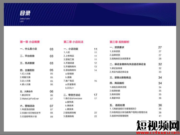 同時我們還為你準(zhǔn)備了一份官方版《抖店百寶書》PPT文檔。百寶書共43頁,包含如下三大章節(jié):