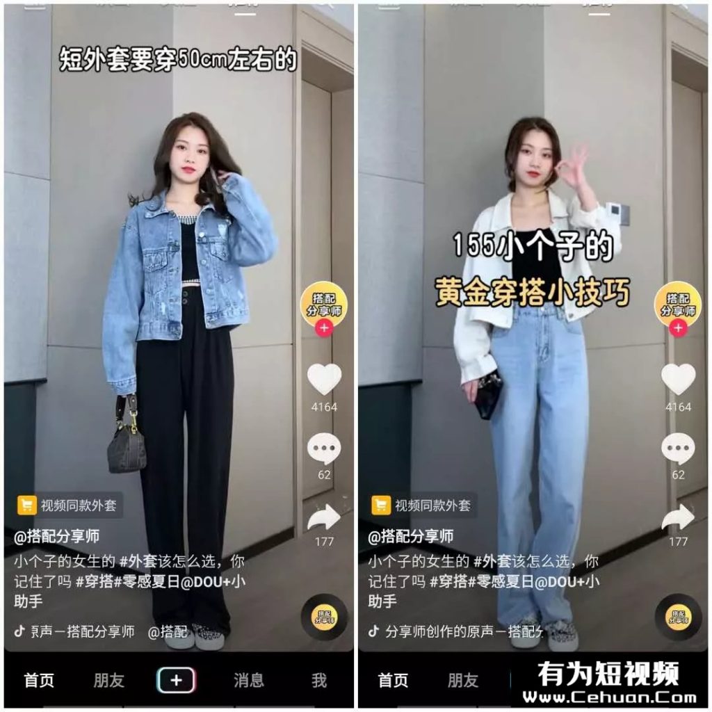 如下圖短視頻的目標(biāo)群體就是155小個子女孩子,她們的痛點就是個子小,衣服不好買不好搭配,抖音帶貨視頻就直接搭配好,配合購物車銷售。