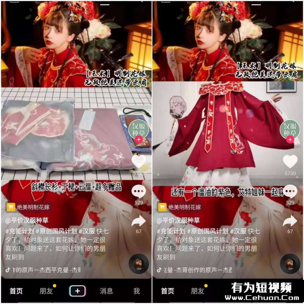 如下圖帶貨漢服的短視頻,充分展現(xiàn)了漢服各個角度的美感,配合贈品福利,就非常吸引人。