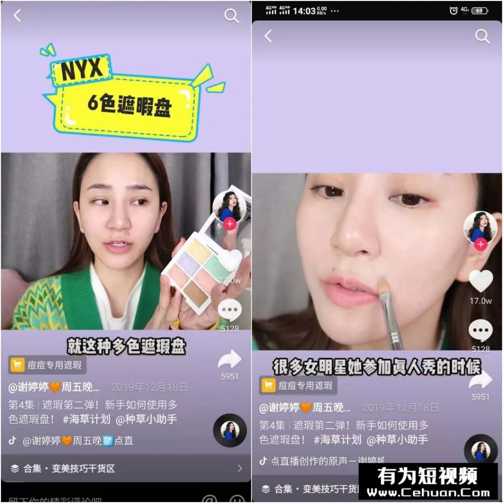 下圖抖音帶貨視頻就是先提出痛點——長痘痘,后面推薦產(chǎn)品——遮瑕盤,配合遮瑕實操,效果立竿見影,自然能夠勾起用戶的購買欲。
