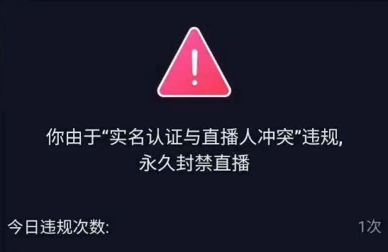 還有因?yàn)閷?shí)名認(rèn)證與抖音直播人沖突違規(guī),導(dǎo)致直播間被永久封禁。