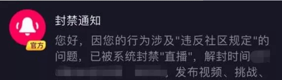 有人因?yàn)檫`反抖音社區(qū)規(guī)定,抖音直播間被封禁。