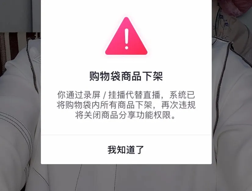 有人因?yàn)殇浧?掛播來代替直播,而導(dǎo)致商品被下架,直播被中斷