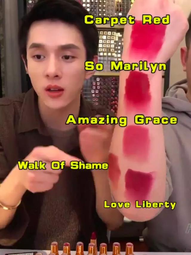 口紅涂在手上給大家展示它的色號(hào),對(duì)比涂之前和涂之后對(duì)人氣色的改變)(美白、抗皺、祛痘、保濕)。
