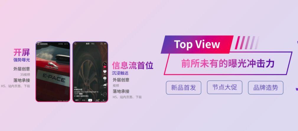 2019年,王丁虓表示,2019年想做一件新的事情,就是Top View。覆蓋開屏和信息流首位第一視覺位置,幫品牌做到最大曝光,對滿足新片首發(fā)、節(jié)點大促、品牌造勢這樣的營銷訴求,將帶來前所未有的曝光沖擊力,幫助品牌全面霸屏。大叔理解,就是一句話:抖音的Top View深受好評。