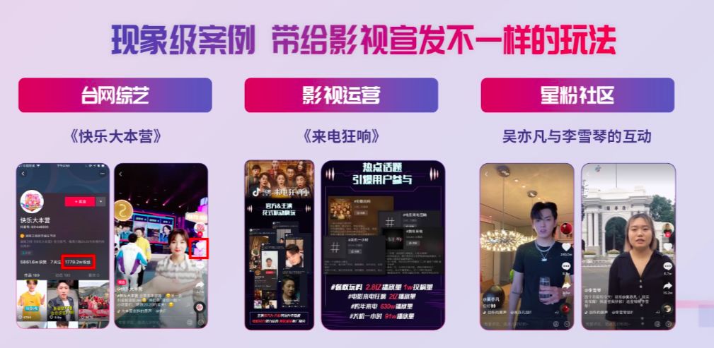 此外,在臺網(wǎng)互動、影視運營和星粉互動上,這些原本都是微博的傳統(tǒng)優(yōu)勢項目,現(xiàn)在來看,正在被抖音追趕,甚至部分已經(jīng)超越。吳亦凡和李雪琴在抖音的互動看似有些荒誕,背后反應的是明星和粉絲互動新型社區(qū),在抖音已經(jīng)慢慢開始產(chǎn)生。所以,抖音已不僅僅是流行的體現(xiàn)者,更是制造者和引領(lǐng)者。