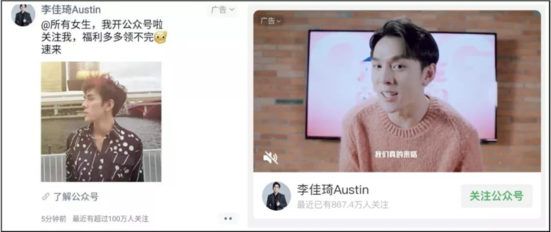 一個多月前,相信經(jīng)?;燠E微信生態(tài)的朋友們一定看到過朋友圈、公眾號底部出現(xiàn)李佳琦官方公眾號的廣告。