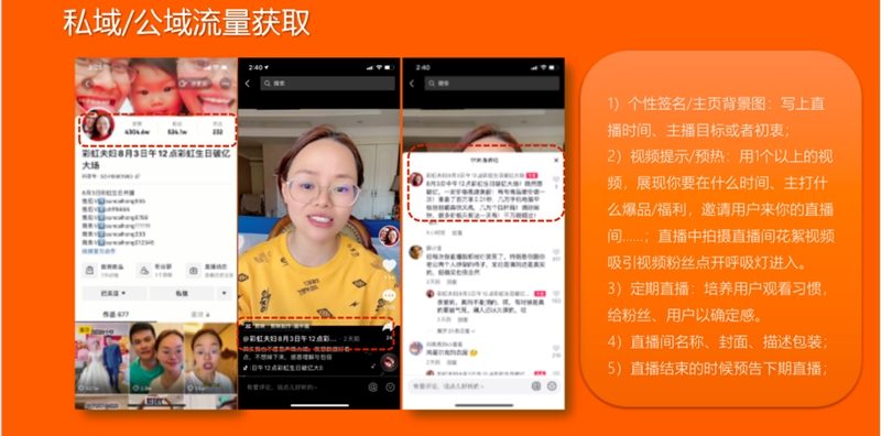 付費流量怎么投講起來一節(jié)課,之前也有請過老師講過,今天就不講了,我們來說說怎么充分獲取免費流量。直播中的方法還是剛剛說的,做好時長,留存,互動,漲粉這四個要點。其次就是做好直播前的預(yù)告。預(yù)告有幾種方式,主頁的裝修放上預(yù)告、短視頻預(yù)告,直播即將結(jié)束預(yù)告下一場開播時間及內(nèi)容。