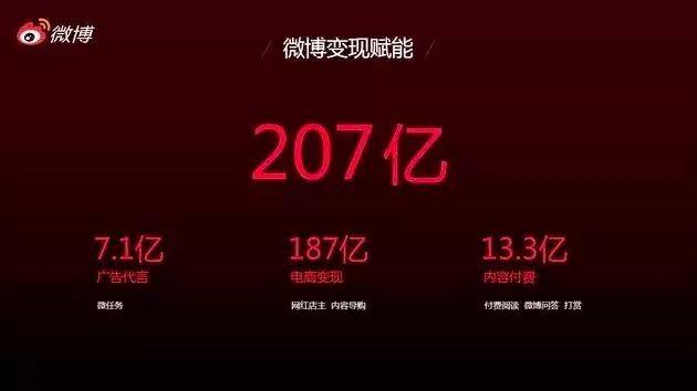 反觀紅人經(jīng)濟(jì)起步更早的微博,據(jù)微博CEO王高飛公布的數(shù)據(jù),2017年自媒體通過微博獲得的收入超過207億元,其中電商變現(xiàn)收入為187億,占到90%,電商仍然是紅人在微博平臺的重要盈利模式。