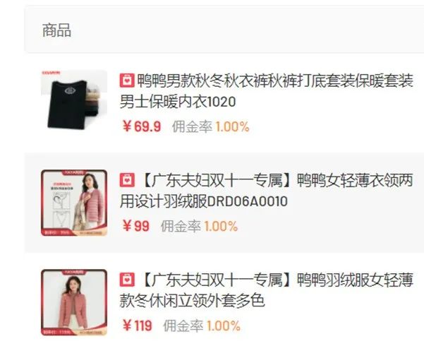 廣東夫婦帶貨的部分鴨鴨商品