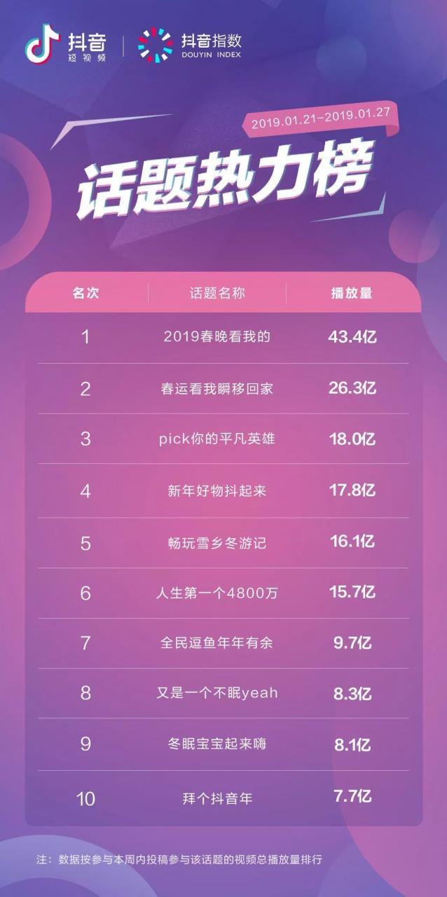 抖音指數(shù)1周熱榜——過(guò)年啦,記得上抖音看春晚!