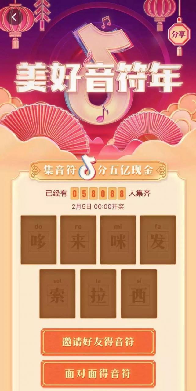 43.4億!“2019春晚看我的”成為本周最紅紅火火火的話題,沒(méi)錯(cuò)!抖音是今年央視春晚的獨(dú)家社交媒體平臺(tái),同時(shí),抖音也獻(xiàn)上了新年福利,1月28日-2月4日期間,通過(guò)抖音參與“集音符,分現(xiàn)金”活動(dòng),集齊音符即可瓜分總計(jì)5億元現(xiàn)金紅包,我在抖音等你哦!