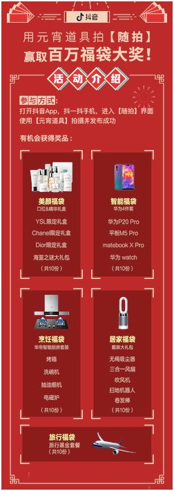 抖音啟動“元宵抖福袋”活動,拍隨拍得百萬福袋!