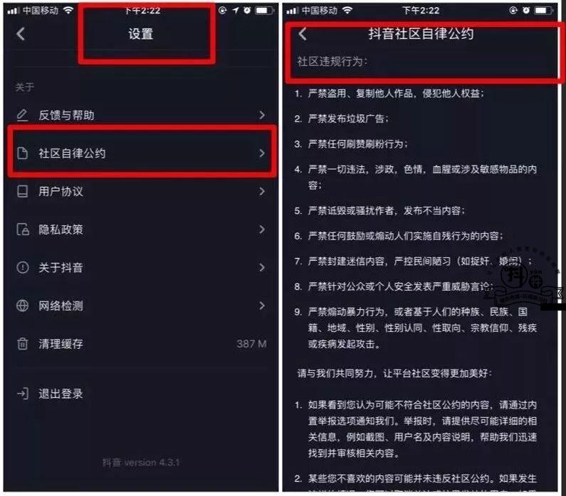 ps:進入自己的抖音設(shè)置頁面后,便可以從“設(shè)置”列表的下方找到“社區(qū)自律公約”,也就是所謂的社區(qū)規(guī)則了。