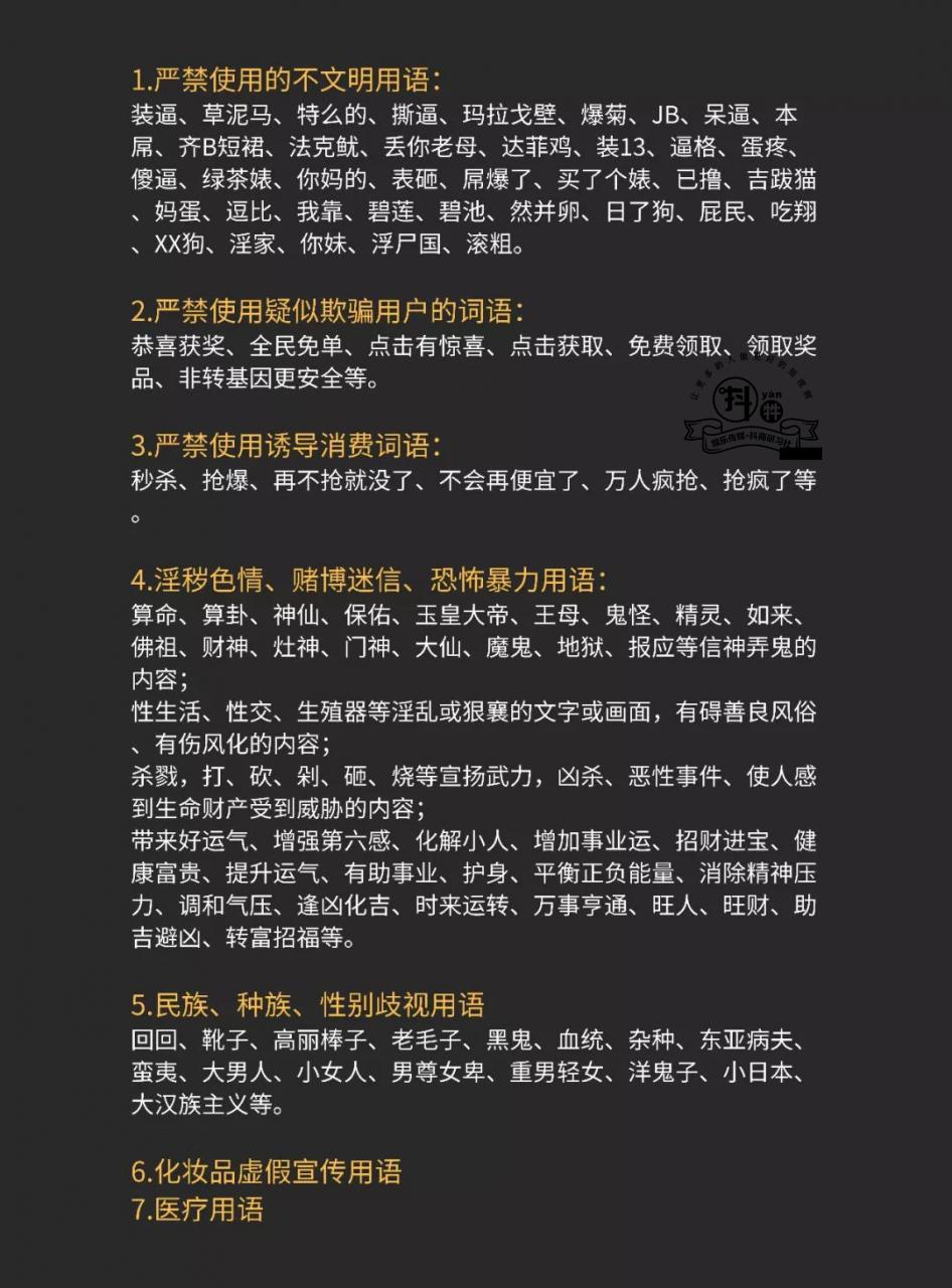 這是從各大平臺篩選、整理,總結(jié)出的容易被審核、處罰的7大類違規(guī)詞。