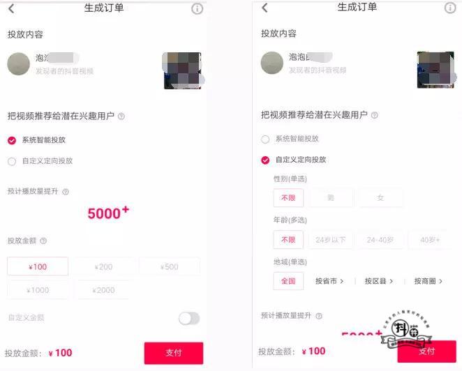 DOU+上熱門功能使用起來也十分簡單,先打開抖音選擇想投放的視頻,點(diǎn)擊右側(cè)“分享”,選擇DOU+按鈕,再選擇期望提升目標(biāo)和投放時(shí)長,接下來選擇投放方式,包括系統(tǒng)智能投放、自定義定向投放、達(dá)人相似粉絲投放等不同的選項(xiàng),最后選擇投放金額進(jìn)行支付即可。