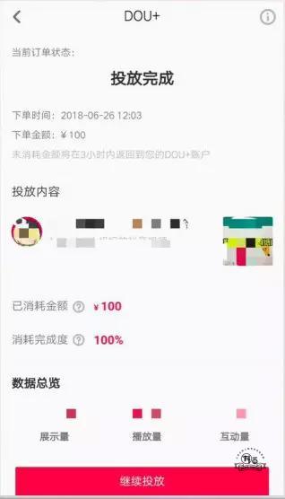 DOU+推廣的視頻沒有“廣告”標(biāo)識,推廣結(jié)束之后還能看到你花費(fèi)的錢究竟獲得了多少展示量、播放量、互動(dòng)量(關(guān)注、轉(zhuǎn)發(fā)、分享數(shù)據(jù)):