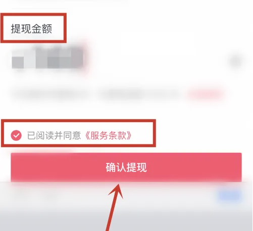 6、在提現(xiàn)頁(yè)面中,輸入需要提現(xiàn)的金額,并勾選用戶協(xié)議,最后點(diǎn)擊“確認(rèn)提現(xiàn)”即可完成提現(xiàn)操作。