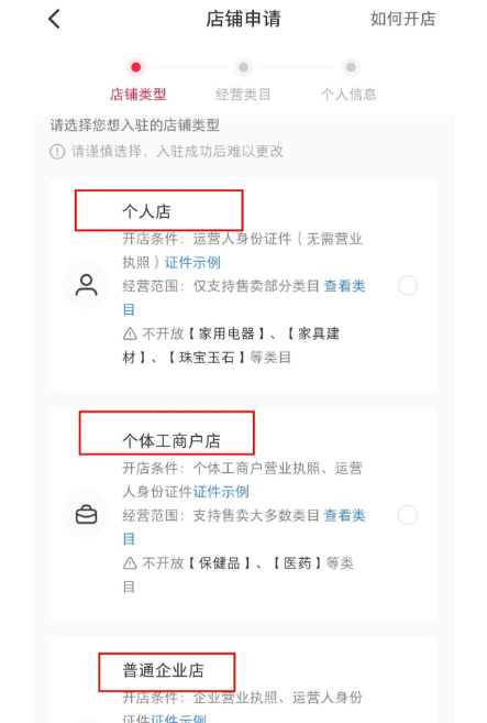 七、填寫對應(yīng)主體信息(以個人店為例),提交后等待入駐審核通過即可。