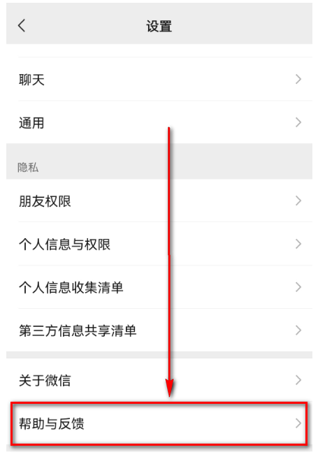 4.到設(shè)置頁(yè)面后點(diǎn)擊:幫助與反饋。