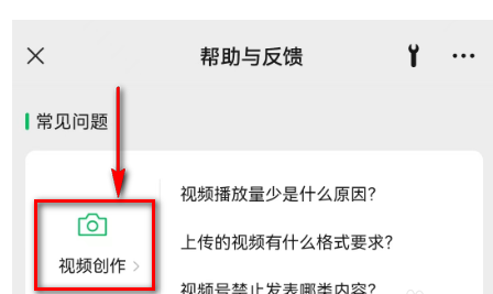 5.到幫助與反饋?lái)?yè)面后點(diǎn)擊:視頻創(chuàng)作。