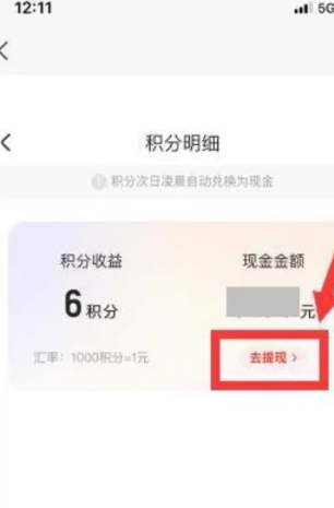 7、進(jìn)入【積分明細(xì)】界面,點(diǎn)擊【去提現(xiàn)】。
