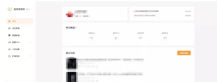 3.確認(rèn)登錄后,就進(jìn)入到后臺中,接下來我們再分別介紹下微信視頻號助手后臺的各個(gè)功能。