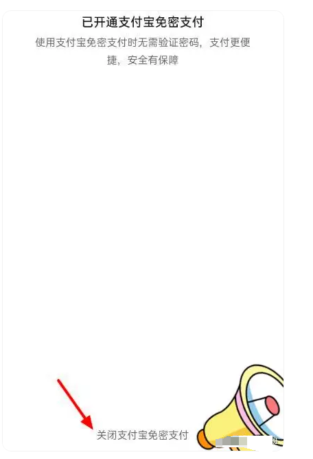 4、點擊“關閉免密支付”按鈕,即可取消免密支付功能。