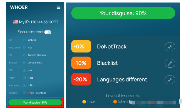 手機(jī)環(huán)境搭建之后,要在whoer網(wǎng)站進(jìn)行測試。