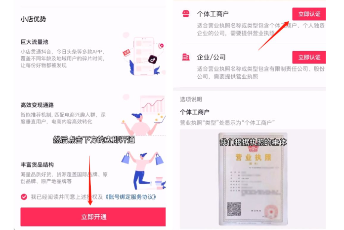 5、點(diǎn)擊“開通小店”,按照提示完成小店入駐流程;