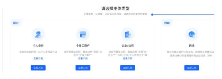 抖音小店入駐店鋪主體類型分為個體工商戶,企業(yè),個人店;