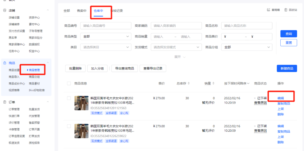 1,在抖音小店后臺,點擊“商品管理”進(jìn)入商品列表頁面;