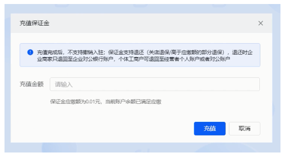 第五步:繳納保證金, 經(jīng)營(yíng)多類目時(shí),僅按最高金額收取,不疊加。