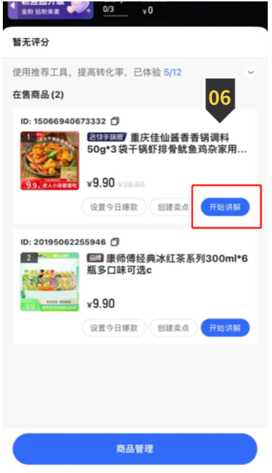 直播中:售賣商品-選擇產(chǎn)品講解-正式開啟直播模式
