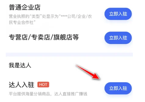 2、找到達(dá)人入駐,點(diǎn)擊立即入駐選項(xiàng),根據(jù)頁(yè)面提示完成入駐。