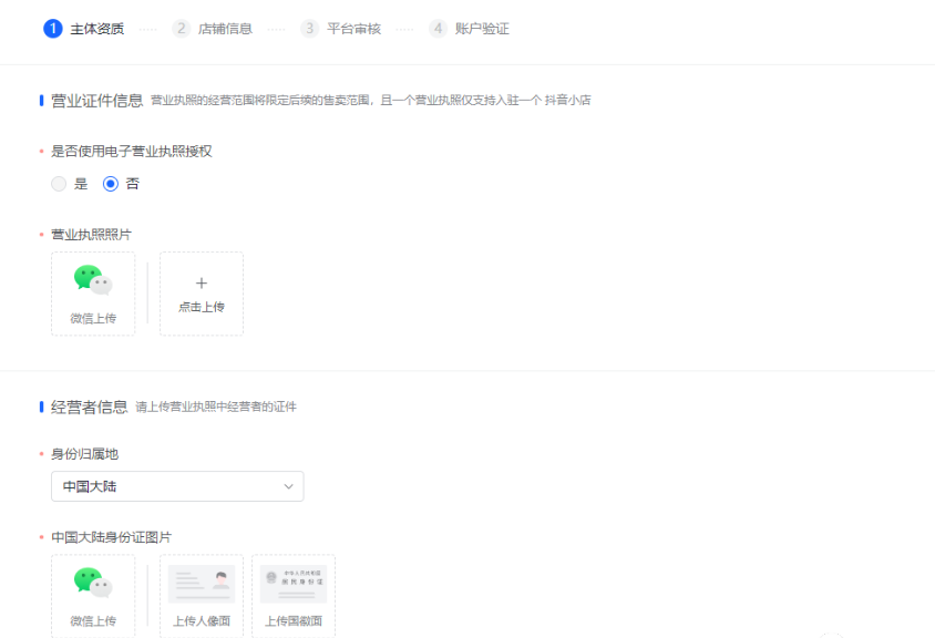 3、提交審核資料;根據(jù)平臺(tái)要求,上傳營業(yè)執(zhí)照、稅務(wù)登記證等相關(guān)證件照片。確保照片清晰、完整,以便平臺(tái)審核人員能夠準(zhǔn)確識(shí)別。