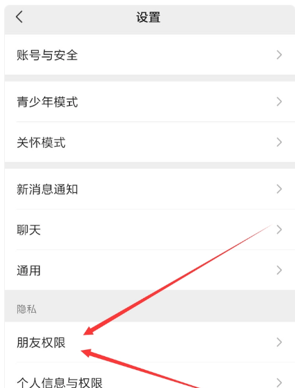 2.進(jìn)入設(shè)置頁面后,點擊【朋友權(quán)限】。如下圖: