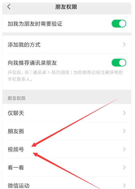 3.進(jìn)入朋友權(quán)限頁面后,點擊【視頻號】。如下圖: